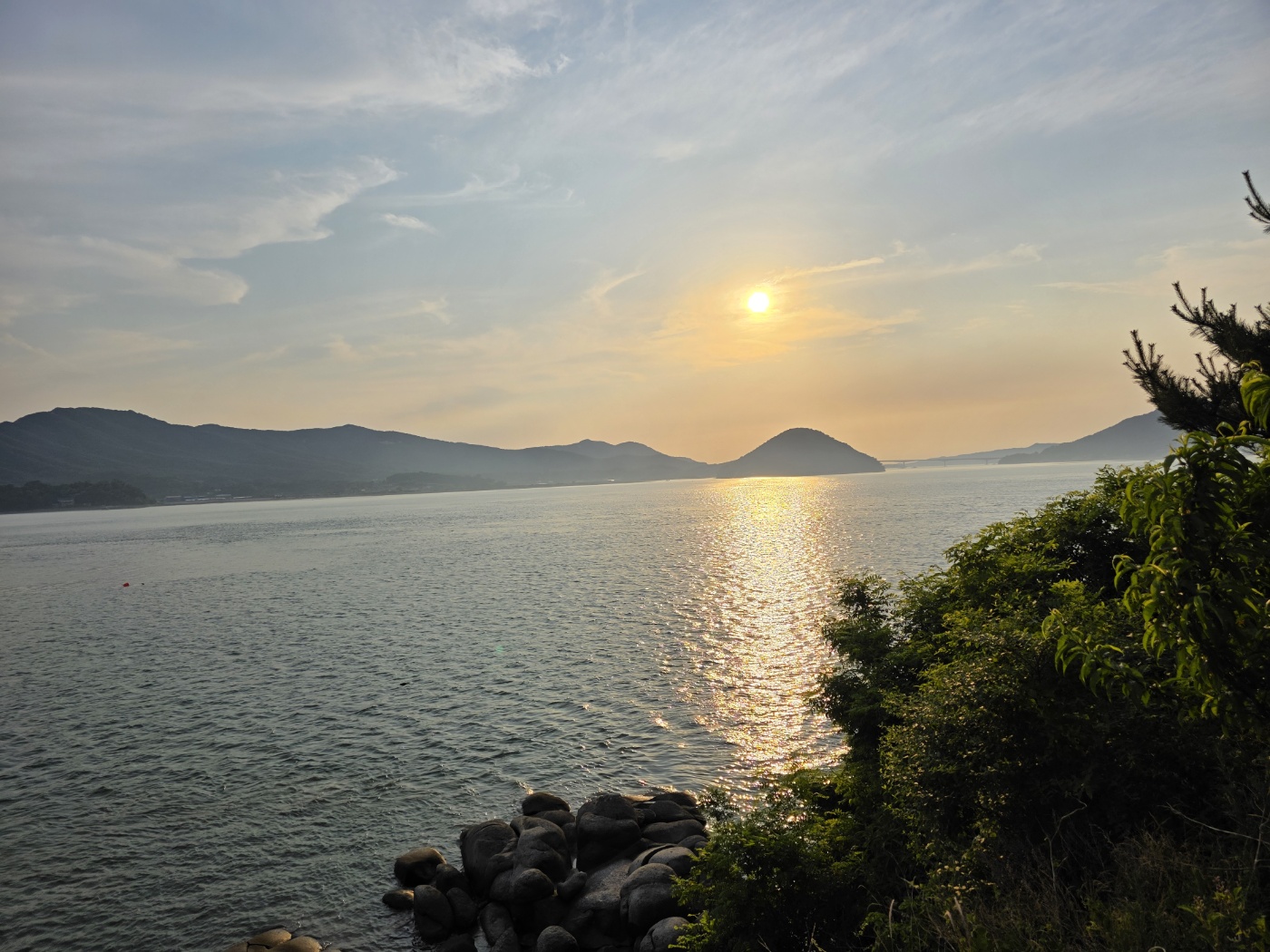 하루의 피로가 서서히 가라앉을 즈음, 바다는 석양을 품고 금빛으로 물들었다.